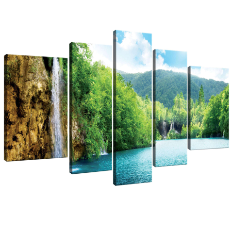 1 kép Vászonkép szett 5 darabos Vízesés a tónál