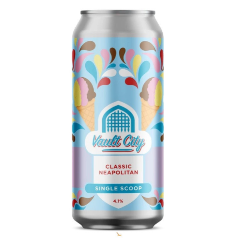 Sour - eper, csokoládé és vanília jégkrém sörben. Vault City Neapolitan Single Scoop Ice Cream - Sour A Vault City Neapolitan Single Scoop Ice Cream- egy klasszikus neapolitán fagylalt három legfinomabb ízének – édes eper, gazdag csokoládé és lá