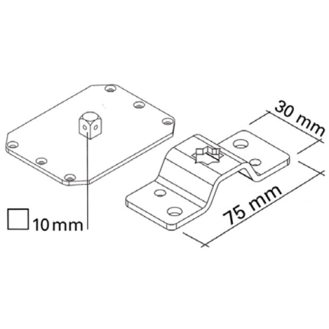 Tengelyvég csap és tartókengyel szett VDS redőnymotorokhoz. - Horganyzott, fém. - VDS redőnymotorhoz használható tengelyvég csap és tartókengyel. - Tengelyvég csap négyzetes rögzítő lemezen, 10mm-es, négyszögletes. - Egyenes tartókengyel, 3 állású. - T