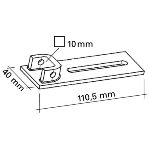 Tengelyvég tartókengyel VDS redőnymotorokhoz, egyenes, 110.5x40mm. - Horganyzott, fém. - VDS redőnymotor tengelyvég rögzítő kengyel. - Egyenes. - 10mm-es, négyszögletes tengelyvéghez. - Méretei: 110.5mm x 40mm.