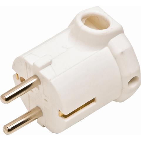A műanyagból készült, fehér védőérintkezős lapos csatlakozó a kevés hellyel rendelkező csatlakozóaljzatokhoz használható. Így a lapos csatlakozó például szekrények mögött vagy akár falmélyedésekben használható. Az érintkezők ónozott vörösrézből készültek. A névleges feszültség 230 V, miközben a névleges áramerősség 10 A és 16 A között van. Emellett a dugós csatlakozó oldalsó kábelbevezetéssel, valamint 2 pólusú kapcsolással rendelkezik. Belt
