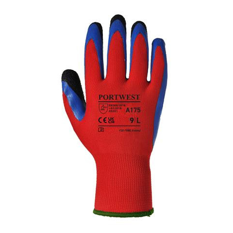 Védőkesztyű, latex, M méret Duo-Flex, piros-kék A DuoFlex modell egyedi, új mártási technológiája lehetővé teszi, hogy a kritikus helyeken a védőkesztyű egy további bevonatot, megerősítést kapjon. Így strapabíróbb, anékül, hogy veszítene a rugalmasságá