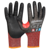 Varrat nélküli, vékony vágásvédő kesztyű extra puha nitril mikrohab bevonattal. Fekete, csúszásmentes nitril szegecsek 40°cig mosható Újrahasznosított petpalackokból készült poliészterszálat tartalmaz Speciálisan elhelyezett erősítés a hüvelykujjujj terül