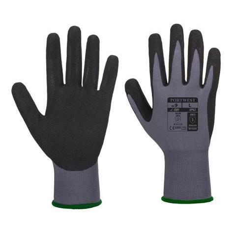 Védőkesztyű, nitril, M méret Dermiflex Aqua, szürke-fekete Az innovatív (NANO) technikának köszönhetően, ez a munkavédelmi kesztyű tökéletesen taszítja a vizet és a különböző nehéz olajokat. A szuperkönnyű, nitril tenyérbevonat és a védőkesztyű anyagáb