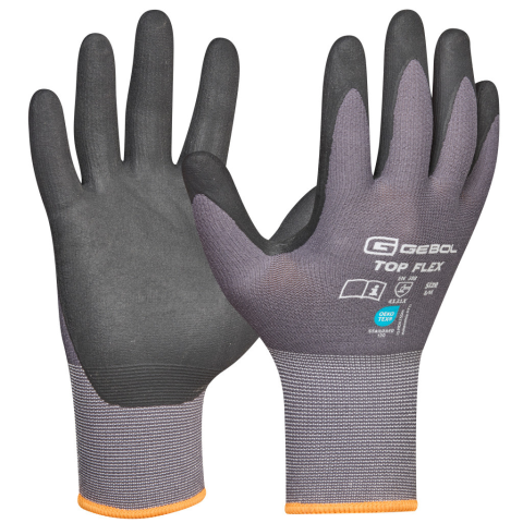 Nylonból és elasztánból készült varrat nélküli, könnyű összeszerelő kesztyű. Nedvességlepergető Optimális kézügyesség Magas viselési kényelem Robusztusság, kényelem és légáteresztő képesség teszi a Top Flex-et a munkakesztyűk között mindenessé. A nitri
