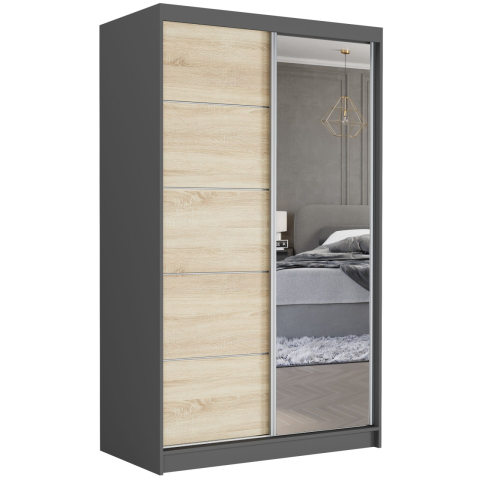 1 kép VEGA I. 120x200x60cm tolóajtós szekrény tükörrel - antracit, sonoma
