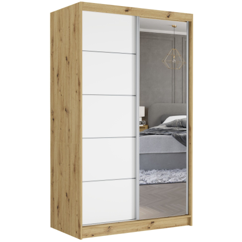 1 kép VEGA I. 120x200x60cm tolóajtós szekrény tükörrel - artisan, fehér