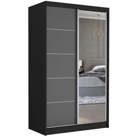 Teljes VEGA I. 120x200x60cm tolóajtós szekrény tükörrel - fekete, antracit termékleírás