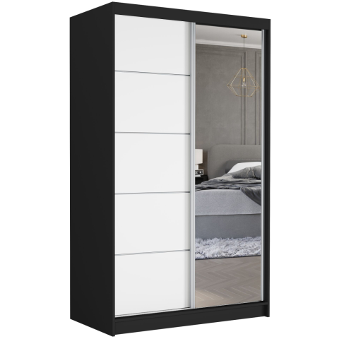 1 kép VEGA I. 120x200x60cm tolóajtós szekrény tükörrel - fekete, fehér