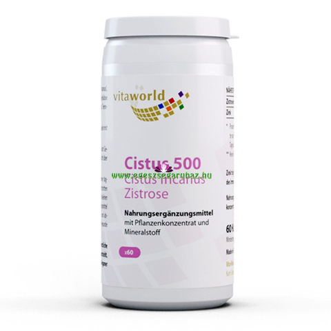 Kapszulánként 500 mg Bodorrózsa (Cistus Incanus L.) növényi por és 5 mg cink.