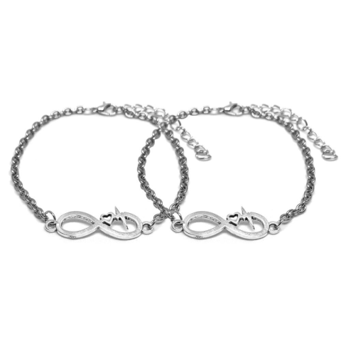 Végtelen-Szív charmos rozsdamentes acél páros karkötő, ezüst színű