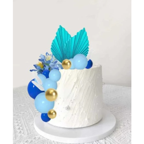 A csomag tartalmaz: - 20 db vegyes méretű gömböt ( világoskék,sötétkék,arany színű) - 2 db papír dekorációt - 1 db művirágot - 1 db egyéb díszt Elegáns és informatív „Tedd különlegessé tortádat ezzel a fényes, gömb alakú tortadísszel! A tartós mű