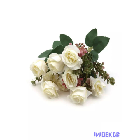 Vegyes színű kis rózsa csokor 30 cm - Törtfehér dekoráció 1 kép