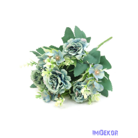Vegyes virágú kis csokor 30cm - Kék dekorációs kellék 1 kép