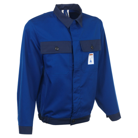 • Alapanyag: 35% pamut, 65% poliészter • Alapanyag súly: 245 g/m² • 2 foltzseb, takaróval és gombbal ellátva a mellrészen • Gumírozott derék • Folyékony vegyszerek elleni védőruházat • Szín: kék-sötétkékMinősítésekCE,EN 340:2003,EN 13034:2005+A1:2009 PB [