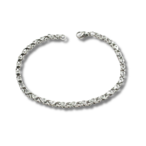 Ezüst színű, vékony acél karkötő minimalista stílusban, 21 cm hosszúsággal. Időtálló és letisztult design, amely bármilyen öltözethez illik