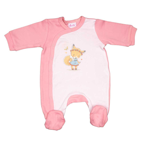 1 kép Vékony, pamut, elöl patentos kislány rugdalózó Rókalány mintával