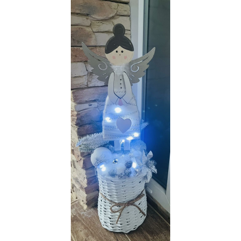 1 kép Vendégváró dekoráció kb. 70 cm – fehér-ezüst LED világítással angyalkával