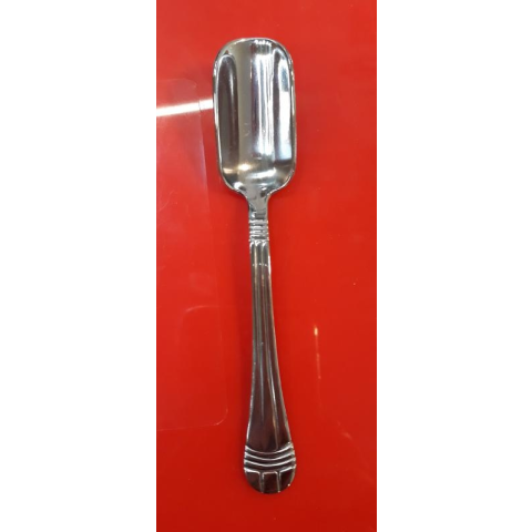 Rozsdamentes acélból készült dekoratív fűszerkanálka. Teljes hossza: 12 cm.
