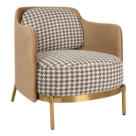 1 kép VENICE karosszék pepita szövet fehér és barna - arany alapon