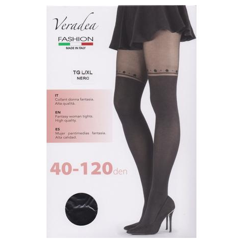 Veradea Fantasia 1268 combfix hatású divatharisnya 1 pár combfix hatású 40-120 DEN-es harisnyanadrág. Szín: fekete (nero) Méret: L/XL Részletes termékinfó a lap alján találhat