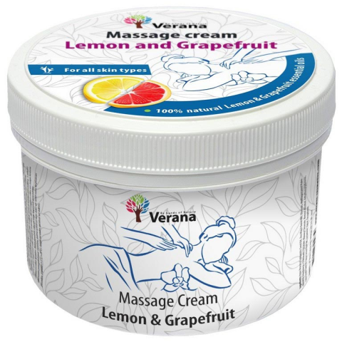 A Verana Citrom & Grep masszázskrém természetes olajokat, illóolajokat és E-vitamint tartalmaz. Természetes összetevői mélyen hidratálják, regenerálják és táplálják a bőrt.