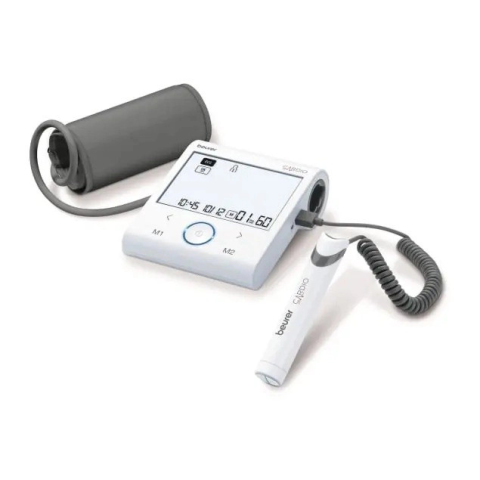 Beurer BM 96 vérnyomásmérő rendkívüli kombinációt kínál: vérnyomás- és EKG-mérést egy eszközben. Az aritmiák fejlett észlelésének és a Beurer HealthManager Pro alkalmazással való összeköttetésnek köszönhetően mindig kézben tarthatja kardiovaszkuláris állapotát.A BM 96 vérnyomásmérő automatikusan méri a karon a vérnyomást és a pulzust. Az EKG pálca segítségével feljegyzi a szívritmust is. Ez az eszköz optimális és átfogó monitorozást kínál a s