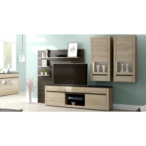 Az VERONA fali egység egy modern bútorkészlet , amely két függő vitrinből és egy TV-szekrényből áll, falfelülettel és polcokkal. A bútorok német pontossággal és megbízhatósággal készültek, az eredeti dizájn alapján. Nagyszerűen néznek ki a minimalista és modern belső terekben, fantasztikusan illeszkednek a divatos nappali hangulatához.
