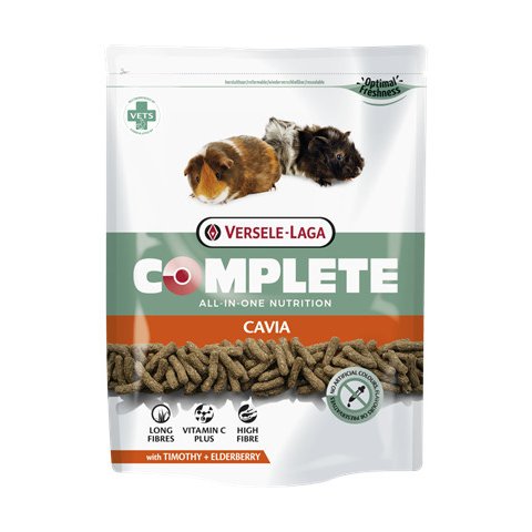 Kiszerelés:0,5kg Versele-Laga Cavia complete - Prémium eledel tengerimalacoknak. Teljes értékű és ízletes, 100%-ban könnyen emészthető alapanyagokból összeállított extrudált eledel tengerimalacok számára. Versele-Laga Cavia complete : Teljes értékű és