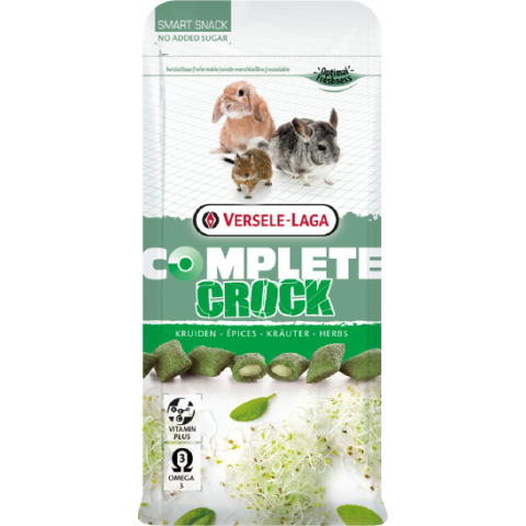 Versele-Laga Crock Complete Gyógynövényes jutalomfalat Jól kiegyensúlyozott ropogós snack lágy gyógynövényes töltelékkel. A Versele-Laga Crock Complete Gyógynövényes Herbs jutalomfalat ízletes és egészséges snack nyulaknak és különféle rágcsálóknak. A ropogós héj élénkíti a rágási ösztönöket, a lágy gyógynövényes töltelék pedig vitaminokkal és omega 3-al gazdagítja kisállatunk szervezetét. A könnyen emészthető Crocks Complete nem tartalmaz hozzáa