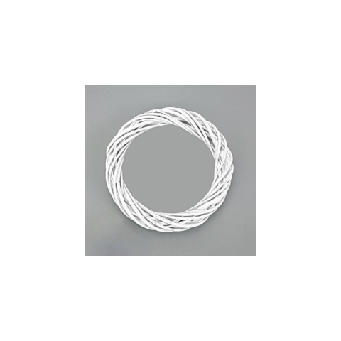 Vesszőből font, fehérre festett koszorú, 10 cm átmérővel. Kitűnő alap ajtókopogtatóhoz, asztaldiszhez, asztali koszorúnak, karácsonyi dekorációs alapnak.