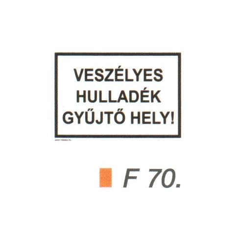 Veszélyes hulladék gyüjtö hely! Cikkszám: F70 Kivitel: Müanyag Méret: 250x175mm