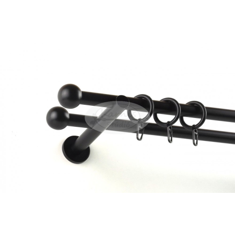 Veszprém fekete 2 rudas fém karnis szett - modern tartóval - 200 cm karnis, függönyrúd 1 kép