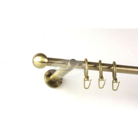A VESZPRÉM óarany színű, 120 cm-es, 1 rudas, modern tartós fém karnis szett tartalma: 1 db 120 cm-es óarany színű, 16 mm átmérőjű fém karnisrúd 2 db Veszprém típusú óarany színű fém karnis végzáró 2 db falra szerelhető modern fém konzol 12 db óarany szín