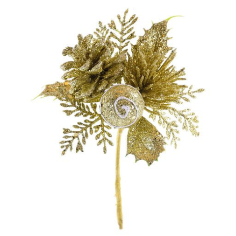 Vetvička MagicHome Vianoce, so šiškou, zlatá 15 cm