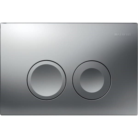 Műanyagból készült vezérlőgomb matt krómozott kivitelben. A gomb csak a Geberit Delta modulokkal kompatibilis, a Geberit Sigma modulokkal nem kompatibilis.