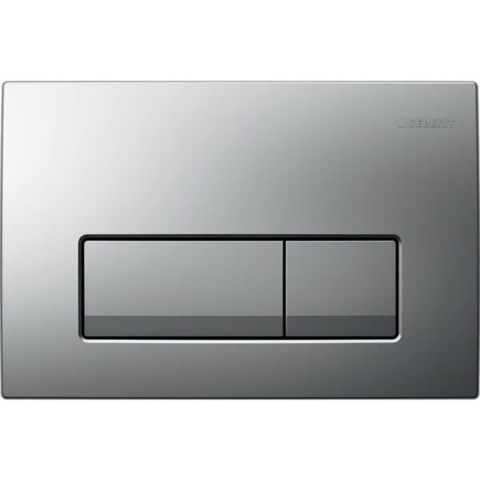 Műanyagból készült vezérlőgomb matt krómozott kivitelben. A gomb csak a Geberit Delta modulokkal kompatibilis, a Geberit Sigma modulokkal nem kompatibilis.