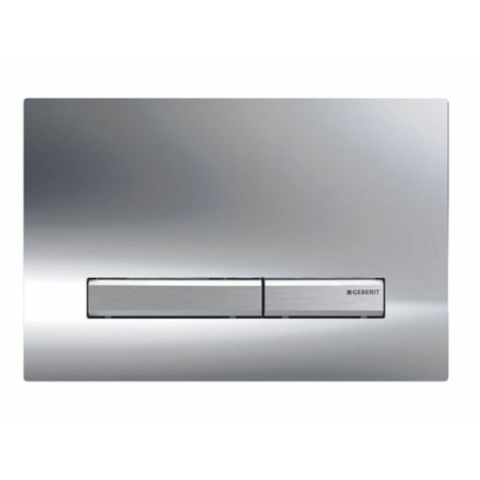 Vezérlőgomb cink nyomóöntvényből, króm fényű, gombok krómozottak. A gomb csak a Geberit Sigma modulokkal kompatibilis, a Geberit Delta modulokkal nem kompatibilis.