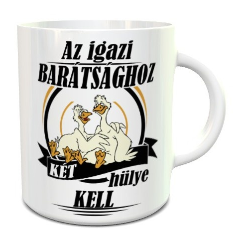 Vicces ajándék barátoknak, vicces bögre barátnőknek. Az igaz barátsághoz két hülye kell. Humoros feliratos bögre férfiaknak és nőknek, barátoknak és barátnőknek poénos grafikával, lepd meg vele te is legjobb barátodat, ha minden hülyeséget együtt csinálto
