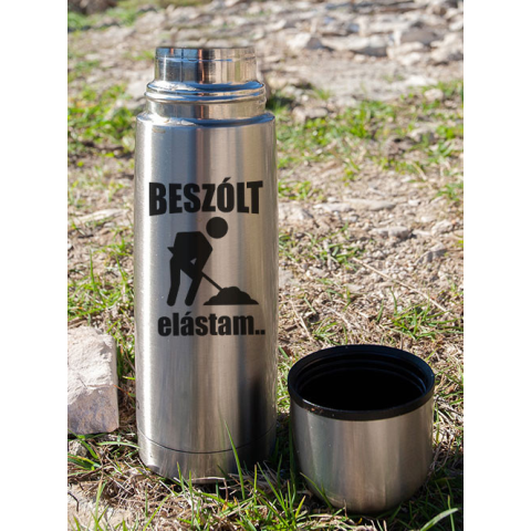 Vicces ajándék, beszólt elástam termosz felirattal, piktogrammal. Fém termosz 500ml vagy 750ml-es méretben. Válaszd ki a Neked tetszőt. Termosz mely télen és nyáron is kitűnő választás. Stílusos és praktikus rozsdamentes acél termosz, amely ideális vá