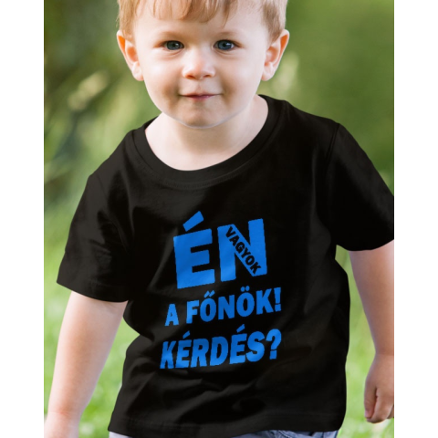 Humoros gyerek póló, én vagyok a főnök. Én vagyok a főnök, kérdés? Humoros feliratos gyerek póló kis főnököknek, lepd meg Te is a Tiédet, ha éppen a születésnapja vagy névnapja közeleg. 100% pamut póló, többféle színben és méretben. Minőségi gyerek pól