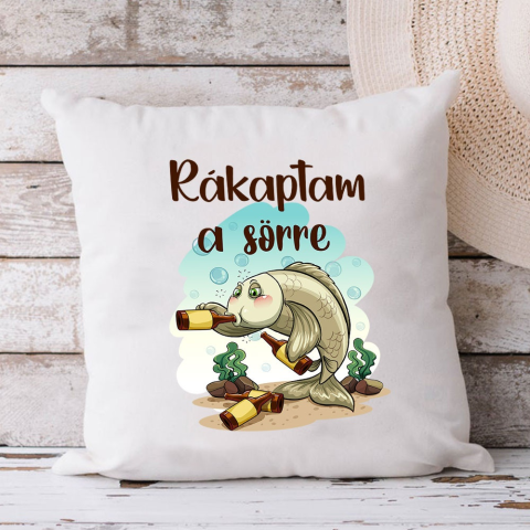 Vicces párna horgásznak, rákaptam a sörre felirattal. Lepd meg pecás ismerősödet vagy családtagodat egy ilyen vicces párnával. A párna hátuljának színét kiválaszthatod, az eleje fehér. Mérete 40x40 cm, húzózáras huzat, és párnabelső. A párna mérete 40x