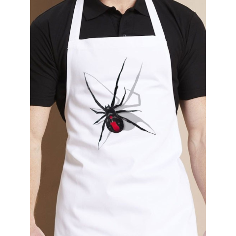 Vicces ajándék, pókos kötény. Fekete özvegy mintával ellátott kötény, pókmániás barátodnak, családtagodnak. Bármilyen alkalomra jó meglepetés lehet egy olyan ismerősödnek, aki szereti a pókokat vagy vicces ajándék olyannak, aki fél tőlük. Mérete 66x78 cm,