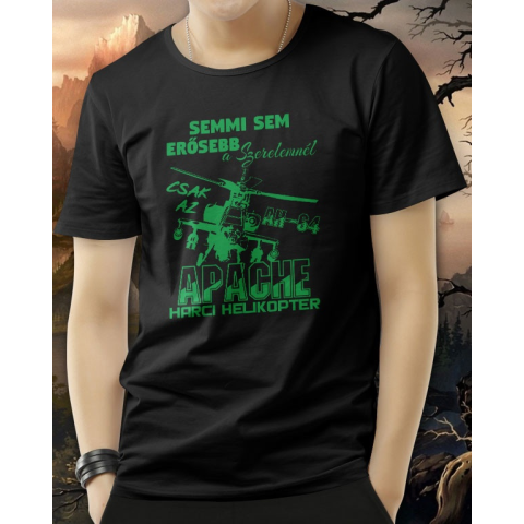 Apache helikopteres póló, erősebb a szerelemnél. Katonáknak, humort kedvelő pároknak egyaránt tökéletes ajándék egy semmi sem erősebb a szerelemnél az AH-64 Apache harci helikopter feliratos póló többféle színben, ahol a minta színe is választható. A póló