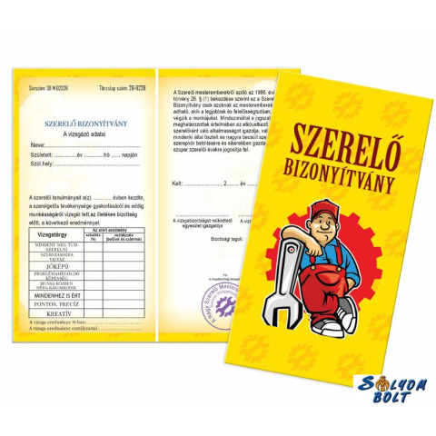 1 kép Vicces bizonyítvány, Szerelő bizonyítvány