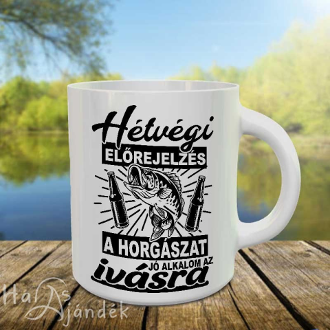 Tréfás horgász bögre, horgászat jó alkalom az ivásra. Hétvégi előrejelzés, a horgászat jó alkalom az ivásra vicces hal mintás bögre. Ismersz olyan embert aki alkohol nélkül el sem tudja képzelni a pecázást, esetleg te vagy pont az aki magára ismer? Rendel