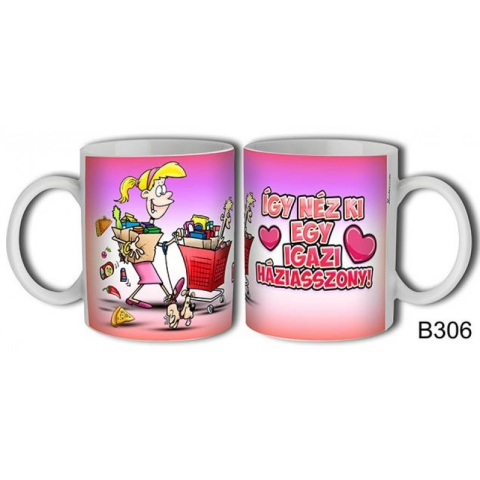 Vicces bögre, Így néz ki egy igazi háziasszony 3 dl Anyaga: kerámia Befoglaló mérete: 12 x 8 x 9,5 cm
