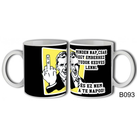 Vicces bögre, Minden nap csak egy emberhez tudok kedves lenni, és ez nem a te napod. 3 dl Anyaga: kerámia Befoglaló mérete: 12 x 8 x 9,5 cm