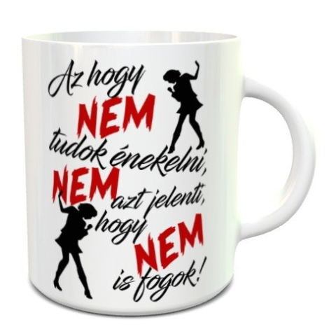 Vicces feliratos bögre, nem tudok énekelni. Az hogy nem tudok énekelni nem azt jelenti hogy nem is fogok humoros felirattal bögre, ami bármilyen ünnepre megfelelő ajándék lehet minden énekelni szerető barátodnak és rokonodnak. Válassz mellé díszdobozt is!