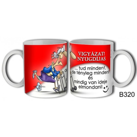 Vicces bögre, Vigyázat nyugdíjas 3 dl Anyaga: kerámia Befoglaló mérete: 12 x 8 x 9,5 cm